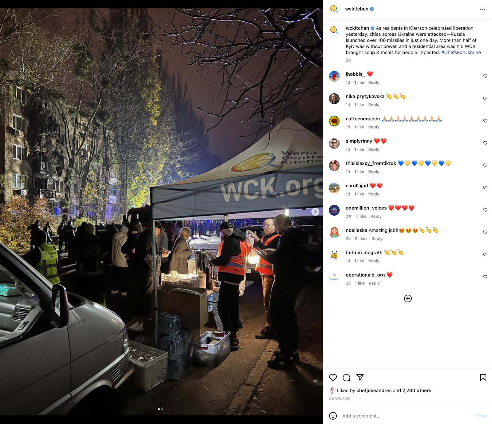 This post recently shared by World Central Kitchen does just that. The pair simple, descriptive copy with an unfussy image that clearly conveys the work that they do. You see the impact first hand, and you get a sense of the people who will be helped as a result of your contribution.